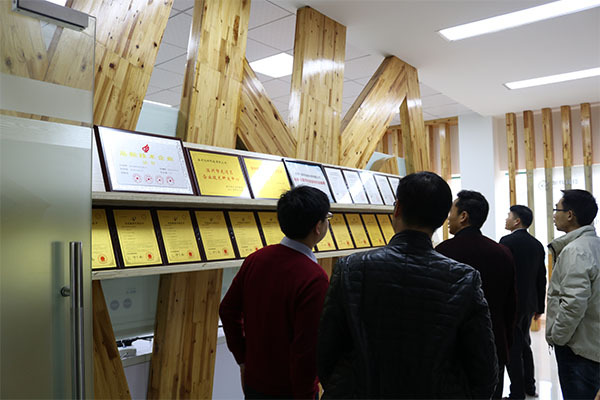 △旭輝科技總經(jīng)理謝樹旭向視察團(tuán)詳細(xì)介紹公司情況及所獲榮譽獎?wù)?/span>